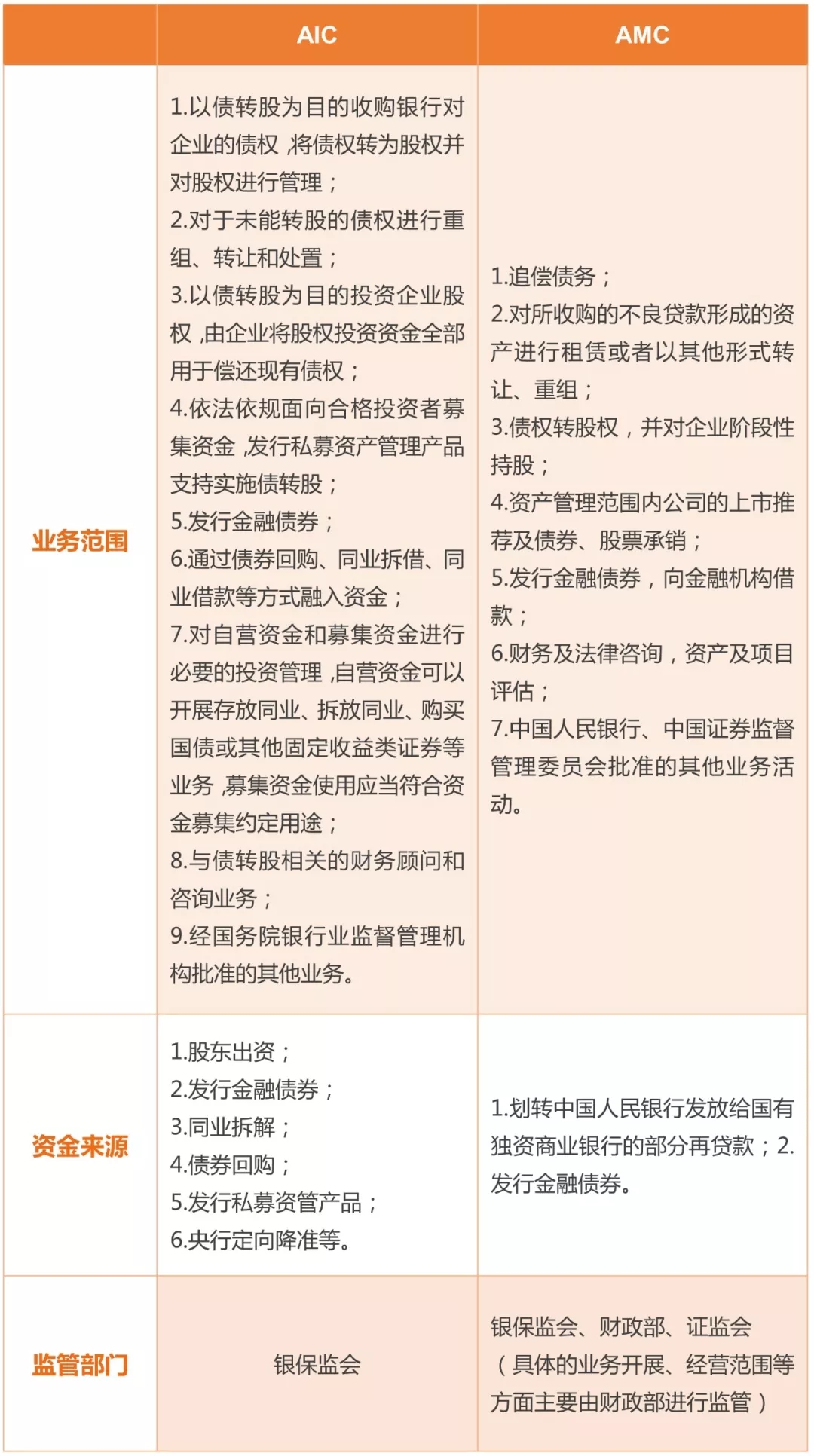 七、金融資產投資公司(以下簡稱AIC)與金融資產管理公司(以下簡稱AMC)的差異