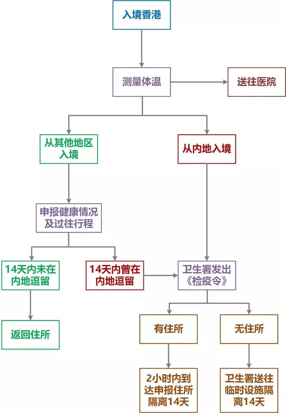 1.對香港居民將進(jìn)行居家檢疫;對已安排入住酒店或其他住所的非香港居民,將會在有關(guān)酒店或住所接受檢疫;若在香港無住所的,則將由衛(wèi)生署安排至?xí)鹤≡O(shè)施接受檢疫。