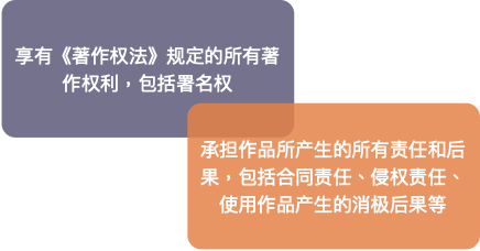 區分作品屬性的主要原因是不同歸屬的作品法律效果不同,包括著作權利的歸屬、維權主體以及責任承擔主體的區別,主要如下表所示: