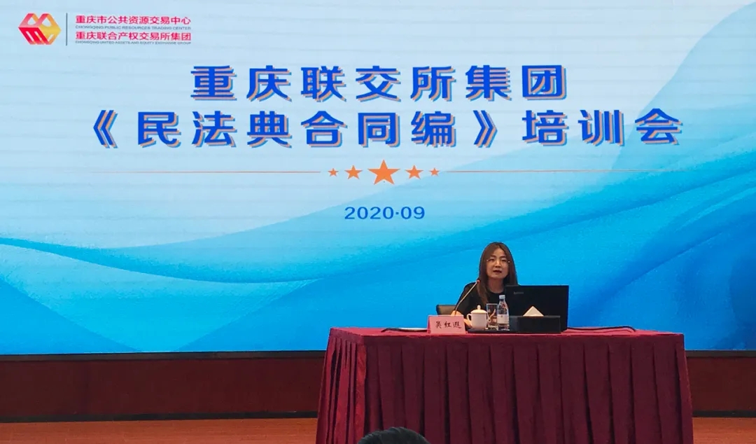 為加強領導干部對《民法典》的理解與認識,提升干部隊伍法律素養,防范集團法律風險,2020年9月25日,合伙人吳紅遐、宋琴受邀為重慶聯交所集團及其子公司中層以上干部和領導作《民法典合同編》專題培訓,逾50人參加了此次培訓。