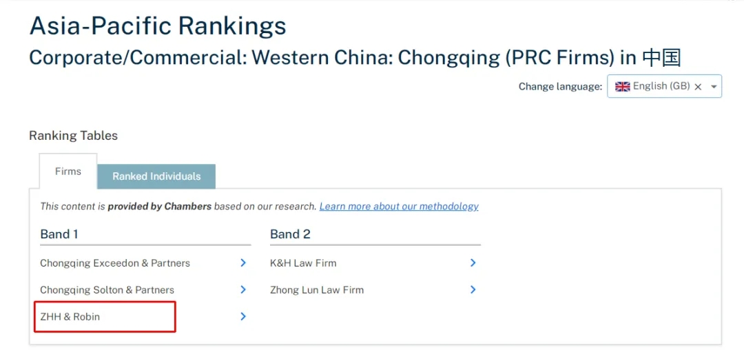 2021年1月13日,全球著名法律評級機構錢伯斯(Chambers and Partners)發布了《2021亞太法律指南》(2020 Asia-Pacific Guide),公布了2021年中國法域中資律所影響力排名。中豪憑借卓越的專業能力、優質的法律服務及良好的業界聲譽再次榮獲中國“公司/商事領域 西部(重慶)地區”第一等律師事務所。中豪入選錢伯斯律所榜單已有14年歷史,此次第十次入榜第一等律所榜單,不僅彰顯了中豪在公司與商事領域的強大實力,也是對中豪專業化、規模化、國際化的充分認可。