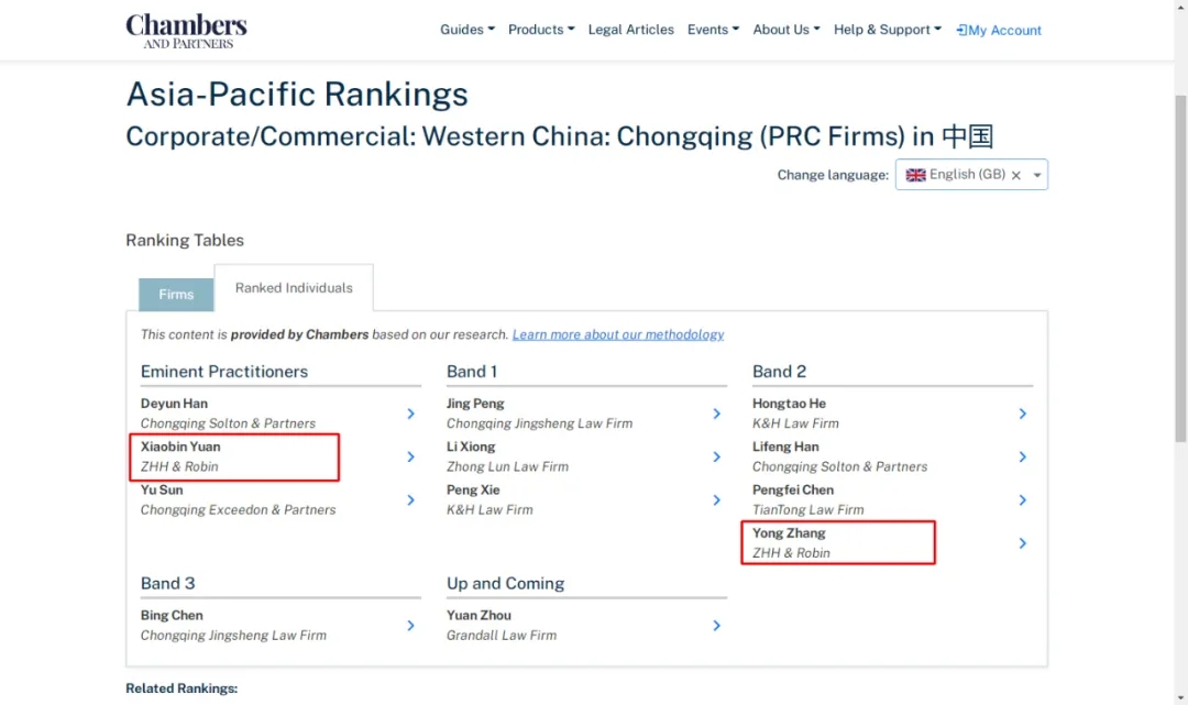 2021年1月13日,全球著名法律評級機構錢伯斯(Chambers and Partners)發布了《2021亞太法律指南》(2020 Asia-Pacific Guide),公布了2021年中國法域中資所律師影響力排名。董事局主席袁小彬再次榮膺“公司/商事領域 西部(重慶)地區”領域“業界賢達”稱號,始終保持著該領域的領軍地位;黨委書記張涌被評選為“公司/商事領域 西部(重慶)地區”領域“第二等領先律師”。