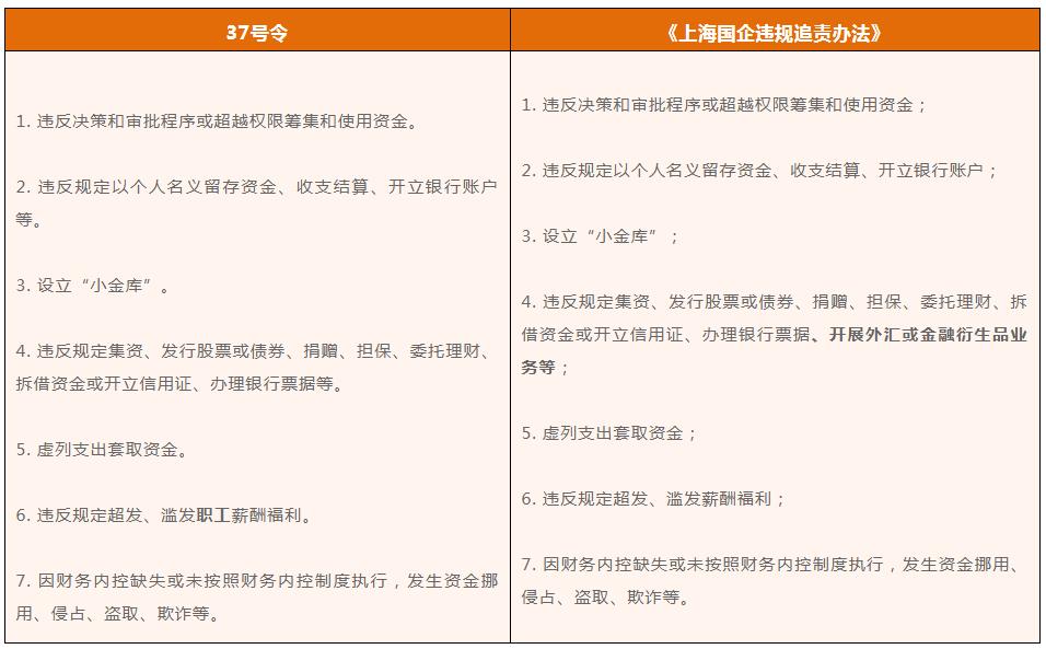《上海國企違規追責辦法》相較于37號令的變化,具體如下表: