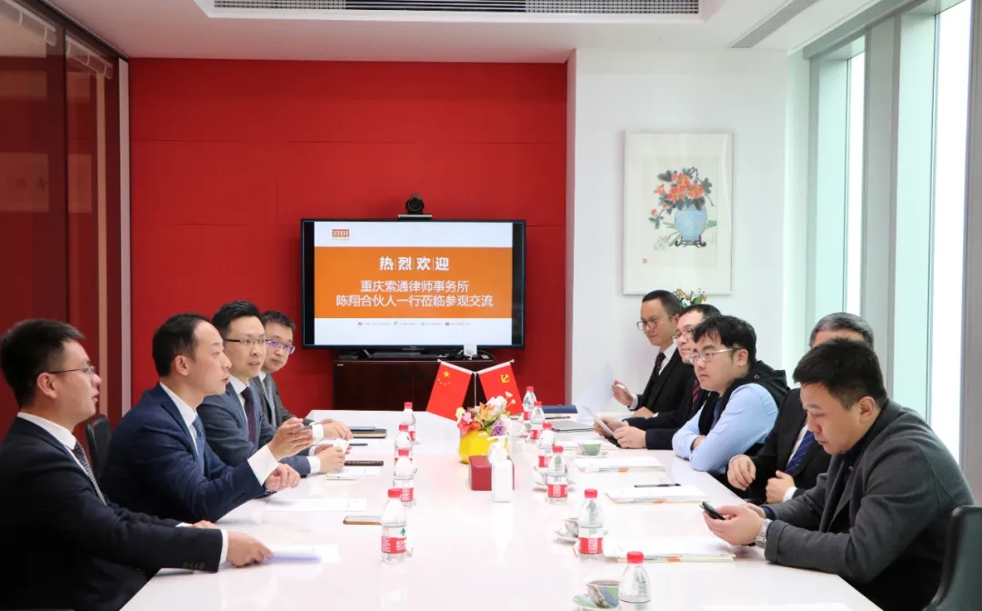 為借此契機進一步優化管理機制,更好地推動律所的品牌建設和業務發展,2021年3月5日,索通高級合伙人陳翔、徐海東、胡永龍、劉超、吳天福等一行到訪中豪參觀交流。合伙人鄭毅、肖東、程地昌、曹陽等進行熱情接待,雙方圍繞律所一體化管理和總分所關系進行座談交流。