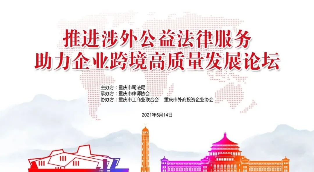 2021年5月14日,由司法局主辦、市律師協會承辦,市工商業聯合會及市外商投資企業協會協辦的“推進涉外公益法律服務助力企業跨境高質量發展論壇”在麗晶酒店成功舉辦。市司法局黨委委員、副局長陳治元,市工商聯黨組成員、副主席王進出席論壇開幕式并講話;市商務委員會副主任宋剛,市高級人民法院民三庭庭長喻志強,市司法局律師工作處副處長、市律師協會秘書長肖華,以及市外商投資企業協會副會長羅永志出席論壇。開幕式由市律師協會會長袁小彬主持,專題論壇環節由市律師協會副會長鄒曉黎主持。市商務委員會、市外商投資企業協會、市律師協會相關負責人,跨國知名企業代表,涉外法律服務專項行動律師服務團成員,市內各大主流新聞媒體等近200人參加了本次論壇。市高級人民法院民三庭庭長喻志強與市商務委員會副主任宋剛分別作了“涉外商事審判新進展”與“共迎制度新變革,共享開放新機遇——以重慶市服務業擴大開放綜合試點為例”的主題演講。合伙人楊青受邀作了“涉外法律實務及律師的價值”的主題演講。