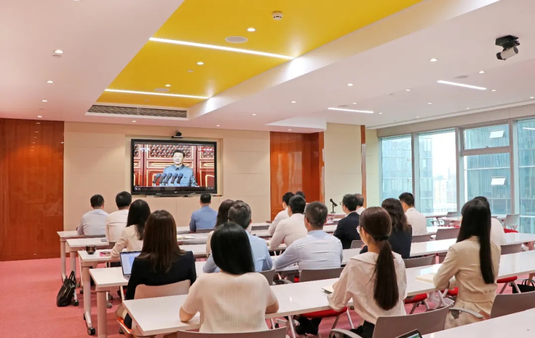 今晨8時,中豪全體黨員齊聚辦公室,共同觀看“慶祝中國共產黨成立100周年大會”現場直播。隨著禮炮鳴響,莊嚴的國歌奏起,鮮艷的五星紅旗冉冉上升,全體黨員肅穆起立,迎接這一光輝的時刻。隨后,全體黨員聆聽了中共中央總書記、國家主席、中央軍委主席習近平的重要講話。