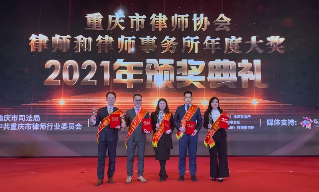 為表彰2021年度表現突出的優秀律師,樹立律師行業標桿,推動律師職業化、專業化成長,促進行業規范拓展,提升社會影響力,2021年12月21日,重慶市律師協會舉辦了“律師和律師事務所年度大獎”2021年頒獎典禮。經過嚴格選拔,憑借專業服務能力、高度的客戶認可、行業影響力,以及強烈的社會責任感,合伙人周鵬榮獲“年度最佳民商事訴訟律師”獎,合伙人文建榮獲“年度最佳法律顧問律師”獎,合伙人肖東榮獲“年度最佳服務民營企業律師”獎,合伙人宋琴榮獲“年度最佳青年律師”獎,中豪兩江新區分所李云英律師榮獲“年度最佳公益服務律師”獎。