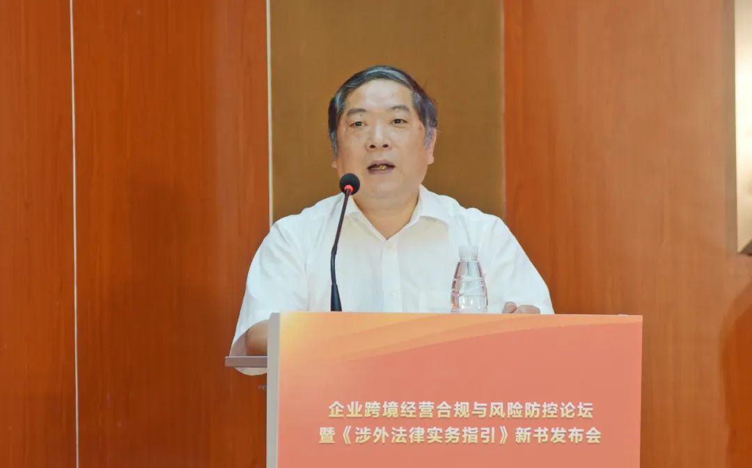 市商務委巡視員蔣中全出席論壇并講話,市司法局律師工作處處長、市律師行業黨委副書記高弘倞出席論壇并在論壇上致辭,市律師協會副會長鄒曉黎現場發布《涉外法律實務指引》。