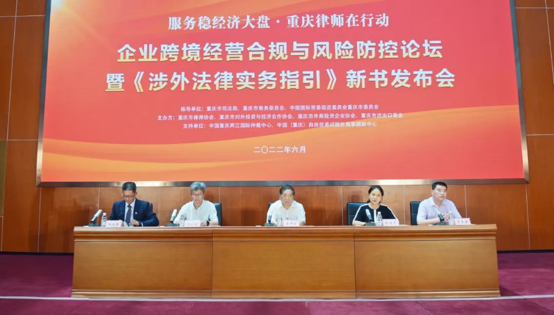 2022年6月15日,在市司法局、市商務委及市貿促會的指導下,由市律師協會、市對外投資與經濟合作協會、市外商投資企業協會、市進出口商會等聯合主辦的“企業跨境經營合規與風險防控”論壇暨《涉外法律實務指引》新書發布會在長江上游法律服務中心成功舉行。這是在市司法局指導下,市律師協會組織開展的“服務穩經濟大盤•重慶律師在行動”系列活動之一。