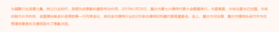 中豪憑借精細(xì)的專業(yè)分工、厚重的文化根基、優(yōu)異的服務(wù)品質(zhì)、領(lǐng)先的市場意識,不負(fù)眾望,榮獲“重慶市優(yōu)秀律師事務(wù)所”殊榮,這是繼“2011-2014年重慶市優(yōu)秀律師事務(wù)所”之后,再次獲得該殊榮。這既是對中豪過去3年取得的杰出業(yè)績的充分認(rèn)可,更是對中豪繼續(xù)砥礪前行,為重慶律師行業(yè)做出更多貢獻的鼓勵。中豪將不忘初心,再創(chuàng)佳績!