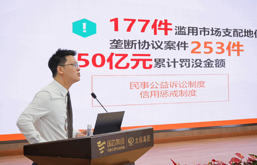 本次培訓分為兩個部分,第一部分是反壟斷合規實務,由范律師主講。為幫助企業更好地理解和遵守新修訂的《反壟斷法》及配套法律法規,更好地開展反壟斷合規工作,范律師從實務角度出發,為企業呈現在日常業務經營和投融資交易活動中的不同業務場景下可能面臨的反壟斷風險,并提供相應的反壟斷合規實務指引。第二部分是反不正當競爭合規實務,由保律師主講。保律師結合太極集團作為上市醫藥央企的具體情況,在《反不正當競爭法》規制的七種不正當競爭行為中特別選取商業賄賂和混淆兩種行為作為主要分享內容,通過對實務場景中的案例評述,指引企業應對商業賄賂風險,治理企業內部腐敗賄賂問題,為企業建立有效的反商業賄賂制度提出具體建議。