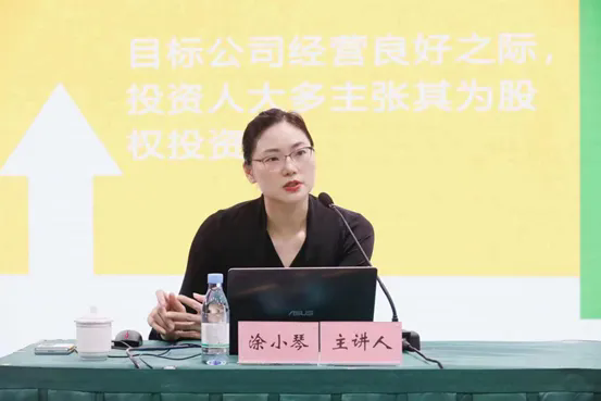 以保護中小股東的權益為出發點,涂律師講解了小股東權利受侵害的主要情形。她強調股權投資實務中,中小股東應通過細化分紅權、限制表決權、細化質詢權及明確知情權等方式約定“好”的章程,以最大程度規避風險。