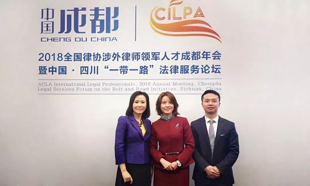 10月27日,由中華全國律師協會主辦,四川省律師協會、成都市律師協會、全國律協外事委員會承辦的“2018全國律協涉外律師領軍人才成都年會暨中國·四川‘一帶一路’法律服務論壇”在成都香格里拉酒店隆重召開,最高人民法院副院長羅東川、四川省高級人民法院院長王樹江、四川省司法廳廳長劉志誠、成都市政府副市長王平江、成都市司法局局長袁宗勇等政府領導出席并致辭和演講。來自全國的涉外律師領軍人才、法律界精英、商界領袖等共400余人參加此次盛會,見證了《“一帶一路”沿線國家法律環境國別報告》《成都宣言》的發布,共商涉外法律服務歷史新機遇。北京辦公室主任章朝暉、重慶辦公室合伙人楊青作為全國涉外律師領軍人才受邀出席,四川辦公室合伙人李靜擔綱論壇主持人,章朝暉作為涉外律師代表為《成都宣言》宣誓。