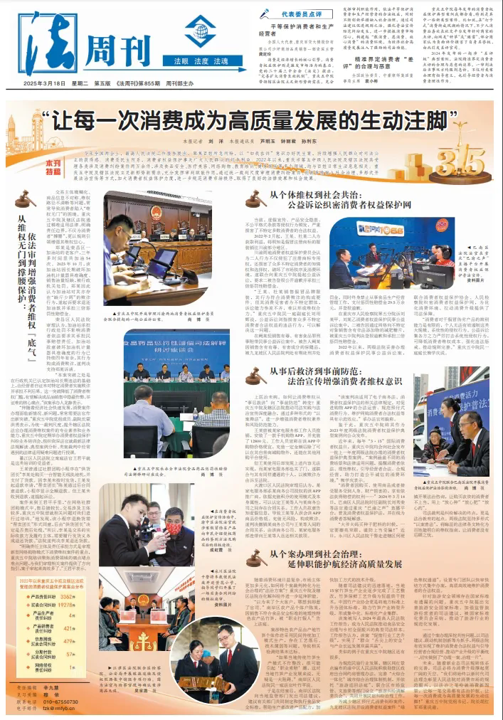 今年全國兩會上,最高人民法院工作報告提出,聚焦百姓所急所盼,以“如我在訴”意識辦好民生案,持續增強人民群眾對司法公正的獲得感。消費是民生所系,消費者權益保護事關廣大人民群眾的切身利益。2022年以來,重慶市第五中級人民法院及轄區法院共受理各類涉及消費糾紛案件兩萬余件,涉及食品安全、醫療美容、網絡購物、教育培訓、健身娛樂等多個領域,均與百姓日常生活息息相關。重慶五中院及轄區法院立足新形勢新需求,充分發揮審判職能作用,通過統一裁判尺度審理消費糾紛案件、創新舉措融入社會治理、多形式開展法治宣傳等方式,加大消費者權益保護力度,進一步規范消費市場秩序,取得了良好的法律效果和社會效果。